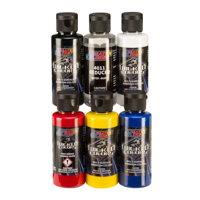 Die CREATEX Wicked Colors Airbrush-Farben eignen sich für alle Untergrände, sind gebrauchsfertig für Airbrushes ab 0,2mm Düse und zeichnen sich durch hohe Qualität und Lichtechtheit aus! Die Wicked Colors eignen sich für alle Anwendungen im Innen- und Außenbereich und müssen zum Aushärten nur auf Textilien heißfixiert werden.